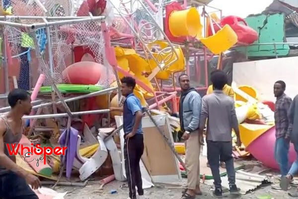 Footage published by Tigrai TV showed a building with the roof blown off, revealing a twisted jumble of slides and emergency workers carrying a stretcher from behind a damaged pink wall painted with a giant butterfly.