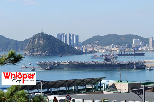 USS Ronald Reagan and ships from its accompanying strike group docked at a naval base in the southern port city of Busan.