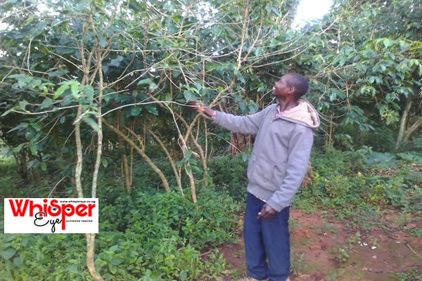Asked why her coffee plants have not yielded unlike before, The widow told Whisper Eye News that the yield was highly affected by pounding rain with devastating hailstorms late last year and this year.