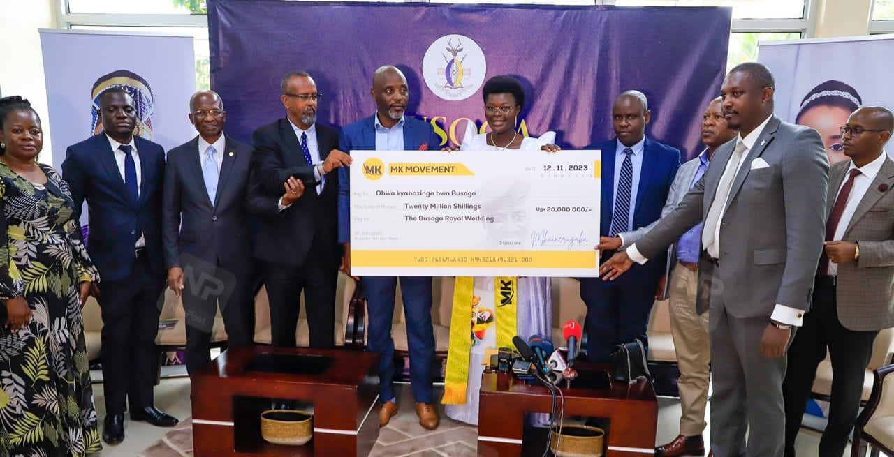 The brown envelope was received by the Katukiro of Busoga Dr Joseph Muvawala who was accompanied by his Deputy and other dignitaries from the Kingdom at Sheraton Hotel in Kampala. The Katukiro thanked the MK Movement and its leader Gen Muhoozi Kainerugaba for taking the initiative to contribute to the royal wedding.